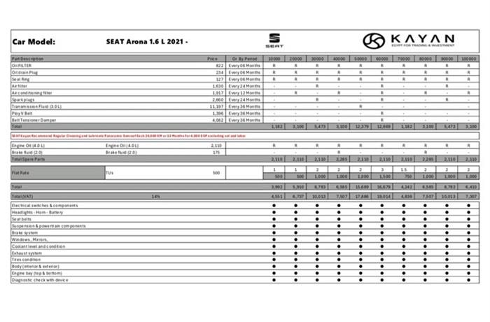 بالإضافة إلى ذلك، انخفضت قيمة الصيانة لكل من كوبرا ليون وسيات إيبيزا وسيات ليون وسيات أتيكا وسيات أرونا بنسبة 7%.