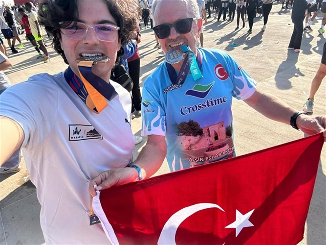 وشهد الماراثون مشاركة تركية لافتة، حيث شارك المواطن التركي إمير في السباق، مجسدًا الحضور التركي في هذا الحدث الدولي الكبير، كما التقى بمشارك تركي آخر قادم من مدينة قهرمان مرعش، في صورة إنسانية عكست روح التلاقي والتعارف بين الشعوب بعيدًا عن الحدود والجغرافيا.
