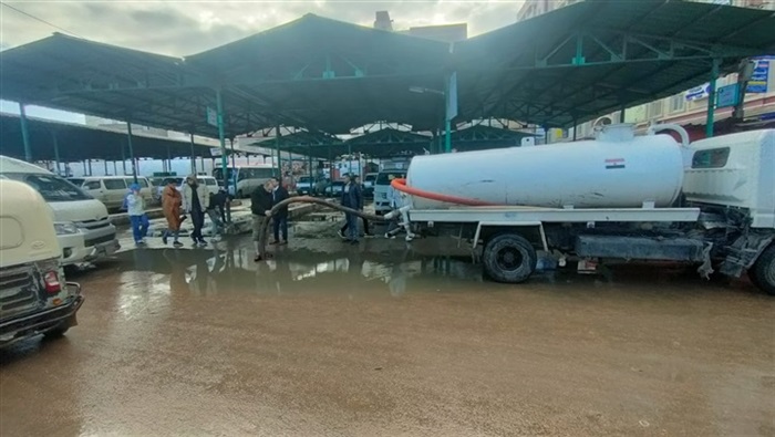 انتشار موسع للمعدات وفرق الطوارئ ورفع تجمعات مياه الأمطار أولاً بأول بكافة المدن والمراكز بالبحيرة