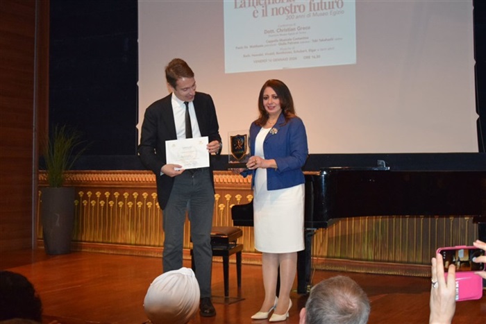 وعقب المحاضرة، قدّمت فرقة “كابيلا كوستانتينا” الموسيقية حفلًا موسيقيًا متميزًا، شارك فيه كل من باولو دي ماتييس، والسوبرانو جوليا باتريونو، وعازفة الكمان توكي تاكاهاشي.
