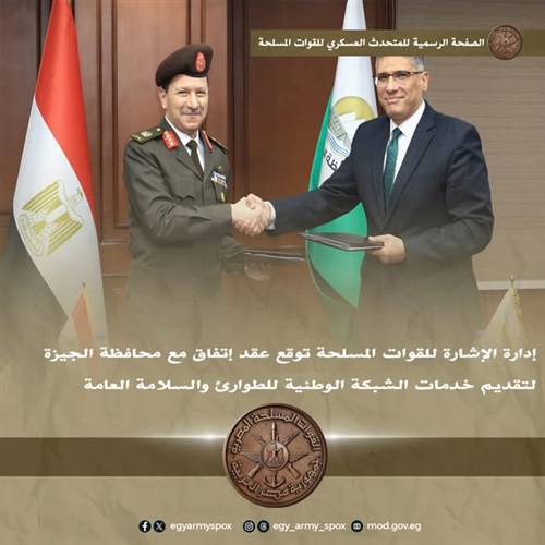 إدارة الإشارة للقوات المسلحة توقع عقد إتفاق مع محافظة الجيزة