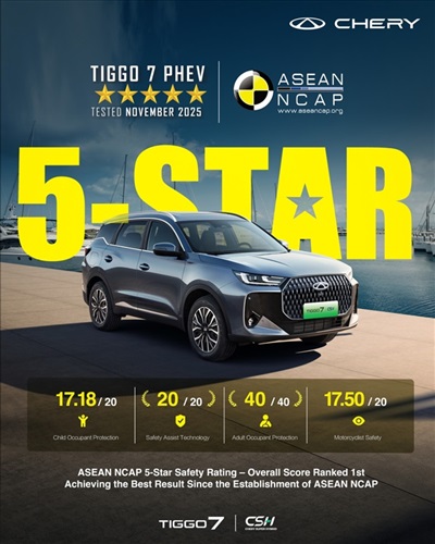 واللافت أن TIGGO7 حققت العلامة الكاملة في فئتي حماية الركاب البالغين وأنظمة المساعدة على السلامة، لتصبح حاليًا السيارة الهجينة القابلة للشحن الخارجي الوحيدة التي تحقق علامة كاملة مزدوجة في هاتين الفئتين. ولمواكبة طبيعة حركة المرور المعقدة في جنوب شرق آسيا، التي تتسم بالكثافة الكبيرة للدراجات النارية وتدفق الحركة المرورية المتغير باستمرار، جُهزت السيارة بنظام المساعدة الذكية للقيادة من المستوى L2+ مع تحسينات متقدمة في نظام مراقبة النقاط العمياء والتنبيه بحركة المرور الخلفية المتقاطعة. وتعمل هذه الأنظمة تلقائيًا عند سرعة تتجاوز 15 كم/س، بما يسهم في تقليل مخاطر الاصطدام أثناء تغيير المسار أو فتح الأبواب.