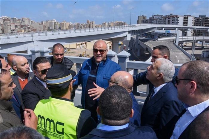 محافظ الإسكندرية يتفقد التشغيل التجريبي للكوبري الرابط بين شارع 45 والطريق الدولي الساحلي “كوبري الفريق أول سليمان عزت”