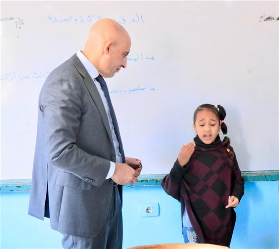 وفي المدرسة ذاتها، التقى السيد الوزير بالطالبة جنا، المتميزة في إلقاء الشعر، حيث استمع إلى إلقائها إحدى القصائد عن الأم، مشيدًا بموهبتها وأدائها المتميز.