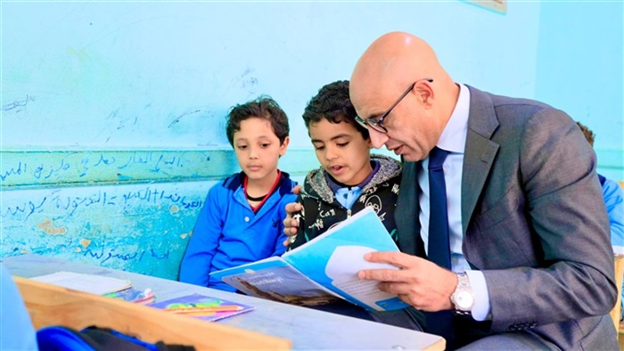 وفي هذا الاطار، تفقد الوزير فصل "أصدقاء المدرسة" المخصص لتطبيق برنامج تنمية مهارات اللغة العربية، حيث اطلع على أساليب تطبيق البرنامج المقدم للطلاب، مشددًا على ضرورة مواصلة تنمية مهارات القراءة والكتابة لدى طلاب الصفوف الأولى.