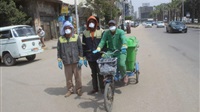 لمواجهة الكورونا.. محافظة الجيزة توزع كمامات وقفزات ومطهرات علي عمال النظافة